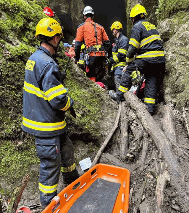 Operátor povolal hasiče kvůli nepřístupnému terénu. Zároveň povolal vrtulník s leteckými záchranáři. Ve spolupráci se zdravotnickou záchrannou službou byl chlapec zajištěn, uložen do vakuové matrace. Zhruba do hodiny byl druhým vrtulníkem transportován do nemocnice. „Včera odpoledne vyslalo naše operační středisko k obci Rudice vrtulník, pozemní lékařský tým a také terénní vůz. Na místo nám vyrazili na pomoc i hasiči vybaveni lezeckou technikou. Školák padal několik metrů, nebylo jednoduché se k němu dostat. Spolupráce obou složek byla klíčová. Pacienta zdravotníci ošetřili, zafixovali a letecky transportovali s podezřením na těžké zranění do brněnské Dětské nemocnice,” popsala mluvčí záchranářů Michaela Bothová. Za zhruba hodinu už s pacientem mířil vrtulník do nemocnice.