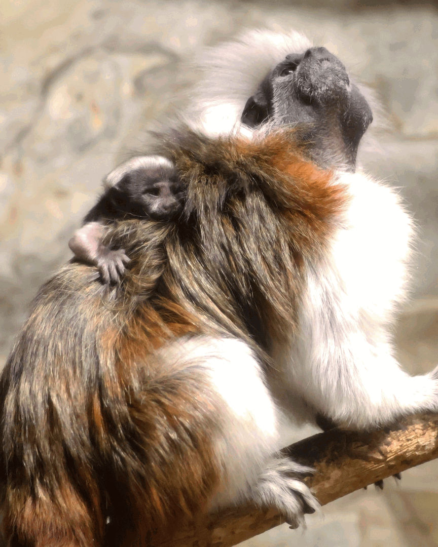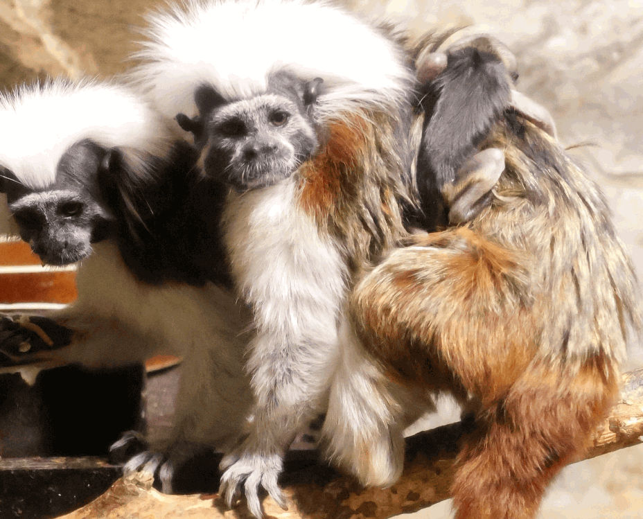 Tamaríni pinčí jsou drápkaté opičky, které chová Zoo Hodonín dlouhodobě. Současná mláďata přišla po šesti letech. Sedmiletý samec pochází z vlastního chovu, čtyřletá samice přišla v prosinci ze Zoo Hluboká. Jde o jejich první potomky. Mláďata nosí hlavně samec, samici je předává na kojení. To trvá tři až čtyři měsíce, poté se mláďata začínají osamostatňovat. Na snímcích je dobře vidět, jak si samice a samec mláďata vyměňují.
