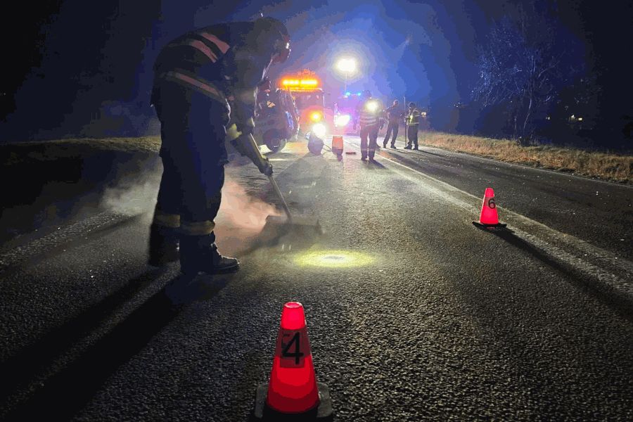 V neděli po 17. hodině byly hasičské jednotky ze stanice Slavkov u Brna a Bučovice vyslány k vážné dopravní nehodě dvou osobních aut na silnici I/54 ve směru na Nížkovice. Po příjezdu na místo bylo zjištěno, že v havarovaných vozidlech se nacházejí celkem čtyři lidi. Jak popsal mluvčí hasičů Štěpán Komosný, hasiči vyprošťovali dva zraněné lidi, jednoho pomocí hydraulického vyprošťovacího zařízení a druhého pomocí páteřní desky. U dvou zraněných hned po příjezdu zahájili resuscitaci, která byla u jednoho úspěšná a podařilo se obnovit životní funkce. Svědkové nehody poskytli první pomoc ještě před příjezdem hasičů a záchranářů. Silnice zůstala nadále uzavřena v obou směrech do doby ukončení šetření nehody.