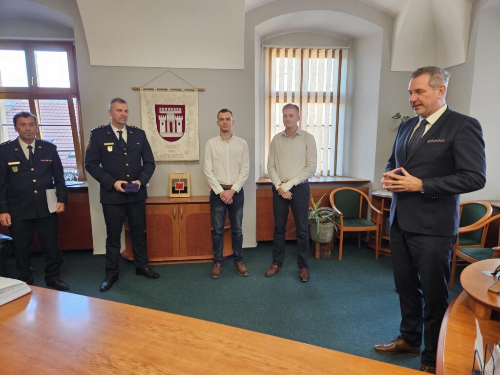 O jejich hrdinském činu jsme psali v článku. Ještě před příjezdem hasičů k požáru dvou unimobuněk neváhali riskovat vlastní zdraví a pomohli třem lidem z oploceného areálu zasaženého požárem. „Sami se při tom zranili. Jejich mimořádná odvaha a rychlá reakce zabránila tragédii,” uvedl mluvčí hasičůý Petr Příkaský. Ocenění mladým mužům předal starosta Veselí nad Moravou Petr Kolář a ředitel ÚO Hodonín Tomáš Salajka.