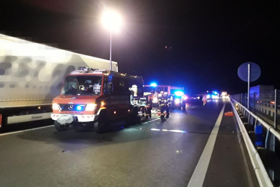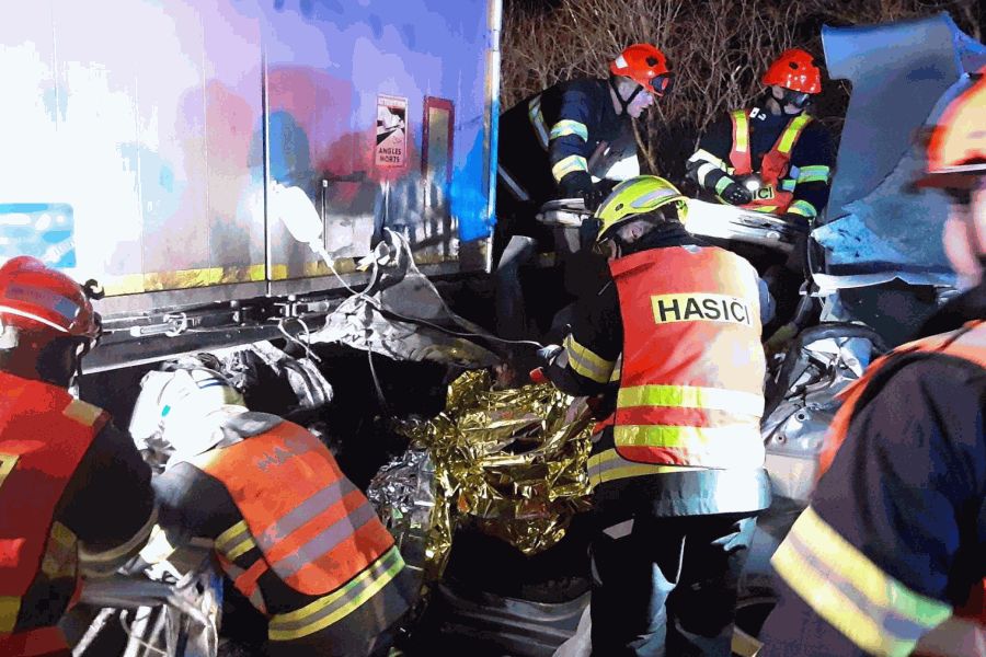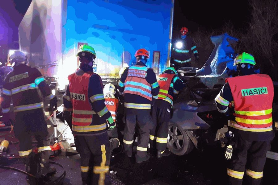 Na 60,5. kilometru dálnice D2 ve směru na Břeclav u hraničního přechodu se stala nehoda auta a kamionu. Dálnice byla v místě nehody uzavřena. Před příjezdem břeclavských již na místě zasahovali slovenští hasiči. Po nehodě zůstal osobní vůz zaklíněný pod návěsem kamionu. Uvnitř cestovali dva lidé, které bylo potřeba vyprostit. „Náročná záchrana trvala přibližně hodinu, než se oba cestující podařilo dostat z vraku vozidla a předat do plné péče,” popsal mluvčí hasičů Jaroslav Mikoška. Záchranáři poslali na místo několik posádek. Letěl i vrtulník, ale ten nemohl kvůli podmínkám přistát. „Jeden z mužů byl převezen s podezřením na těžká zranění do Fakultní nemocnice u svaté Anny v Brně, druhého jsme s těžkými zraněními transportovali do Fakultní nemocnice Brno-Bohunice,“ uvedla mluvčí záchranářů Michaela Bothová. Dálnice na Brno byla během zásahu několik hodin uzavřená.