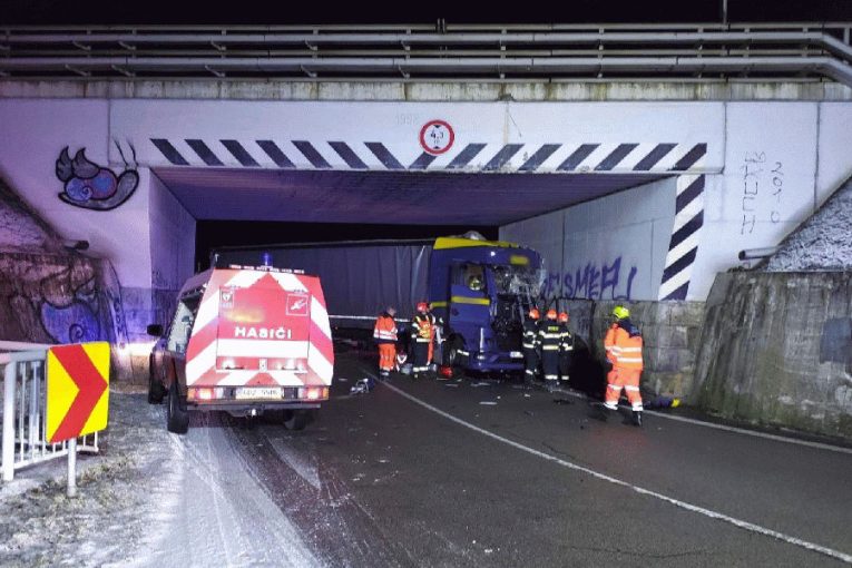 Nákladní auto havarovalo pod železničním mostem u Svitávky