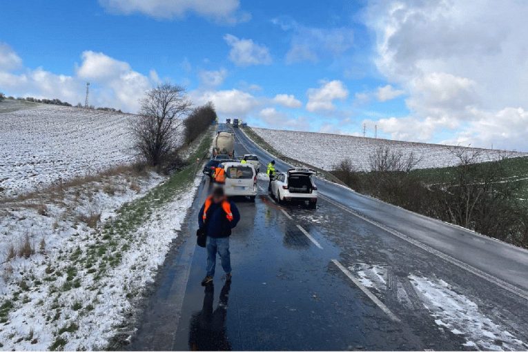 Hromadná nehoda u Krhova: Zimní počasí se sněžením komplikovalo dopravu