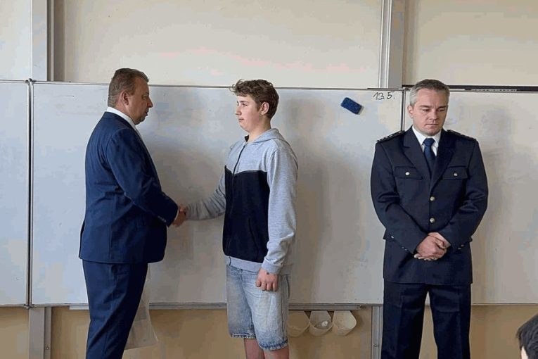Adamovští hasiči poděkovali žákovi 6. třídy za zvládnutí požáru bytu