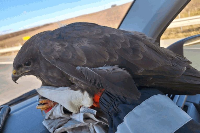 Dálniční policisté odchytili poraněného dravého ptáka na D2