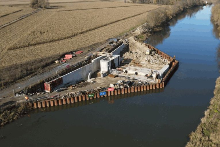 V úterý se začala osazovat první klapka budovaného jezu na Dyji