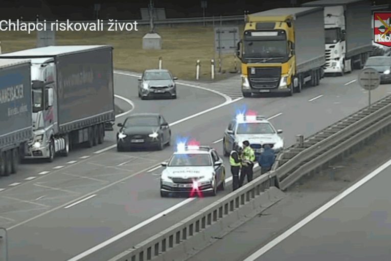 Chlapci se rozhodli přeběhnout dálnici D2 a uvízli. Pomohli jim až policisté