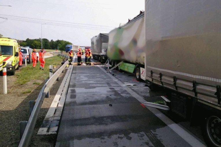 Na dálnici D2 u Brna se srazily tři kamiony. V místě byl omezený průjezd jedním pruhem