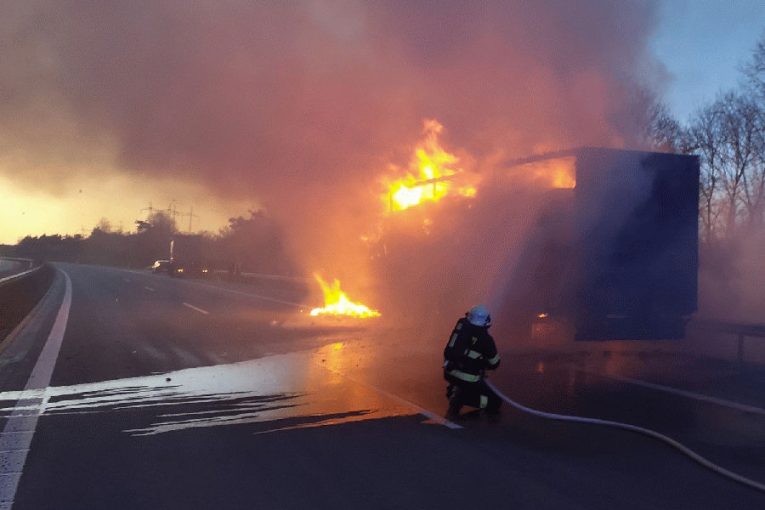 Na dálnici D2 havarovaly tři kamiony. Hasiči vyprošťovali jednoho řidiče
