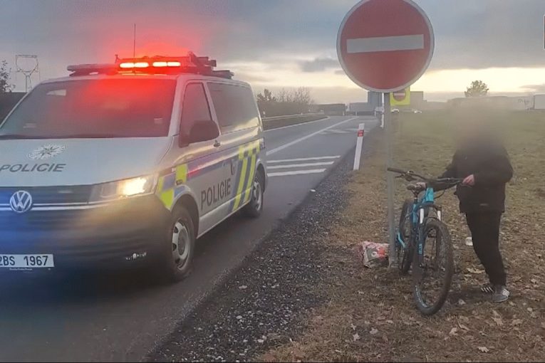 VIDEO: Na kradeném kole po dálnici D1 do Prahy nedojel. Skončil ve vězení