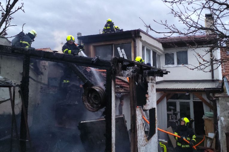 Požár přístavku ve Šlapanicích: Hasiči uchránili rodinný dům
