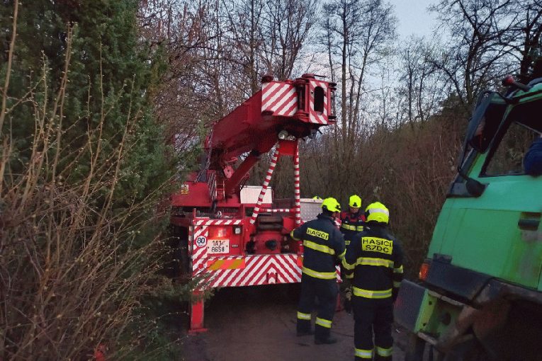 Hasiči vyprošťovali tři hodiny nákladní automobil v obci Lelekovice na Brněnsku