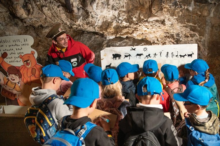 Děti potěší medvěd Bruno, který je provede jeskyní v Moravském krasu