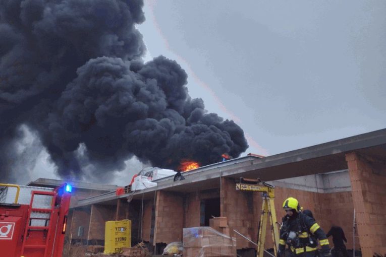 Hustý černý kouř v Drásově: Hořel polystyren na stavbě domova seniorů