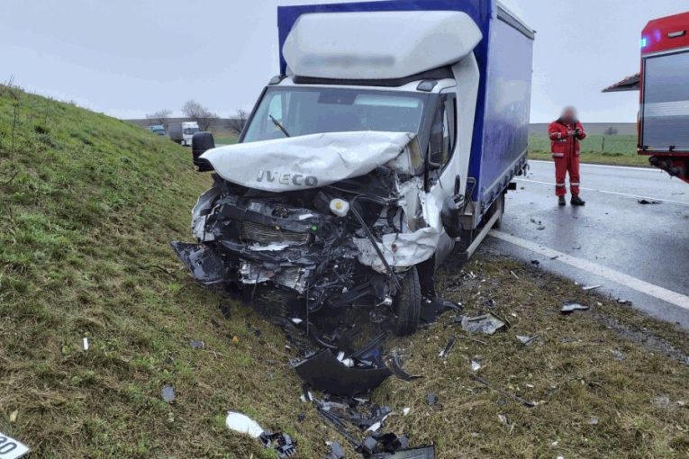 Nehoda osobního a nákladního auta poblíž Holubic: Zraněnou řidičku hasiči vyprostili