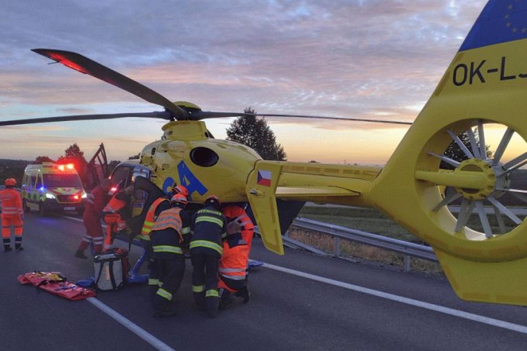 Na dálnici D46 u Vyškova zastavila provoz nehoda. Na místě přistával vrtulník