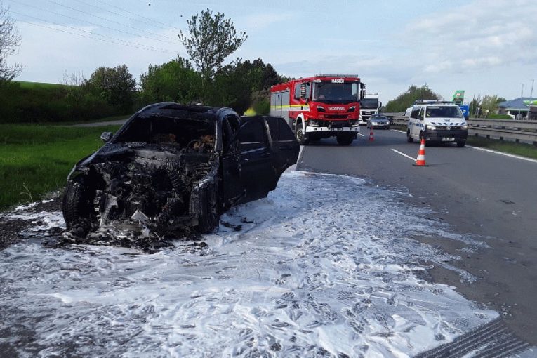 Na D1 u Vyškova likvidovali hasiči požár osobního auta. Doprava na Ostravu stála