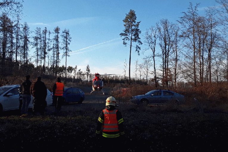 Nehoda na dálnici D1: Řidiče museli oživovat, vrtulník ho dopravil do nemocnice