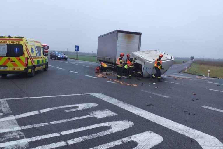 Nehoda dvou kamionů u Miroslavi: Jeden řidič se zranil