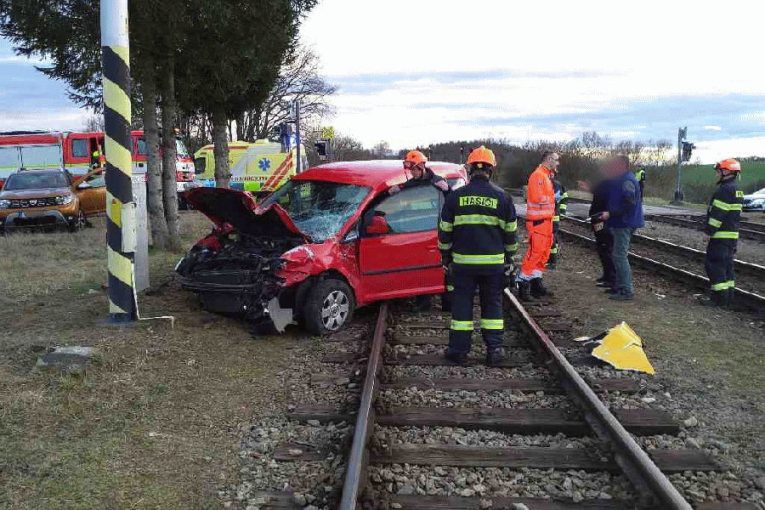 Srážka vlaku s autem v obci Ctidružice na Znojemsku: Jeden člověk byl zraněný