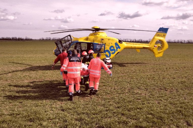 K nehodě osobního auta u Tasovic přiletěl vrtulník