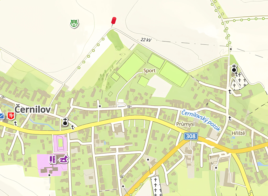 Místo nehody je zachyceno na mapě, kde je vyznačeno červeným špendlíkem.
