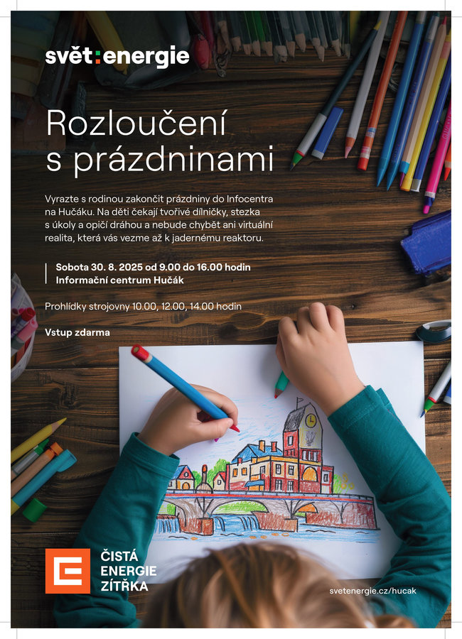 Akce potrvá od 9 do 16 hodin a nabídne zábavu i poznání. Nejmenší návštěvníky čekají tvořivé dílničky, dobrodružná stezka plná úkolů s opičí dráhou, ale také zážitek, který se jen tak nevidí – díky virtuální realitě se ocitnou až u jaderného reaktoru.