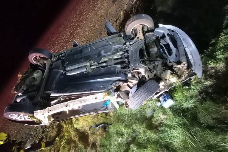 Drama na silnici II/324: Auto se střetlo s kombajnem a skončilo na střeše