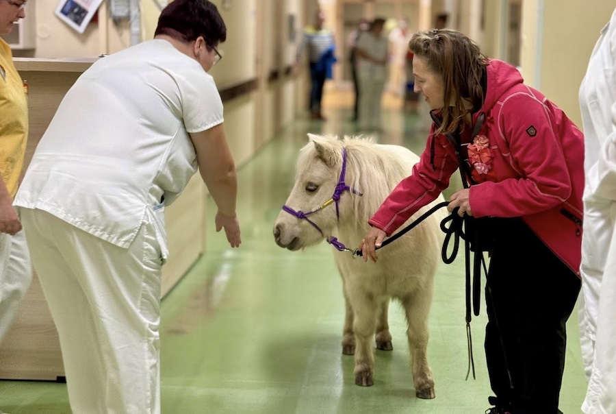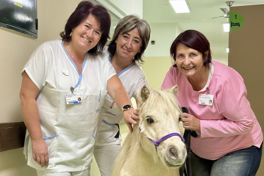 Nečekaná návštěva, kterou primářka Oddělení následné péče (ONP) tajila až do poslední chvíle, přinesla do nemocnice spoustu radosti, smíchu i dojetí. „Někteří nevěřili svým očím, když se osmiletá kobylka procházela po chodbě ONP II, nastupovala do výtahu či vycházela ze dveří budovy FA. A samozřejmě si ji všichni museli pohladit. Někteří navíc měli tu čest připnout jí na hřívu ozdobnou kytičku,“ popsal mluvčí nemocnice Václav Řičář.