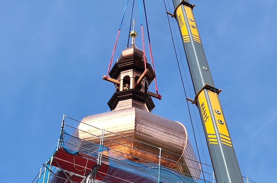 Při požáru byla zcela zničena původní střecha věže i koruna zdiva s římsami. „V roce 1992 byla věž provizorně zastřešena jehlancovou konstrukcí, která však neodpovídala historickému charakteru stavby. Město Žandov se proto v roce 2024 rozhodlo pro celkovou obnovu cibulové báně, vycházející z dobových fotografií a barokních analogií,“ popsal mluvčí Libereckého kraje Jan Mikulička.