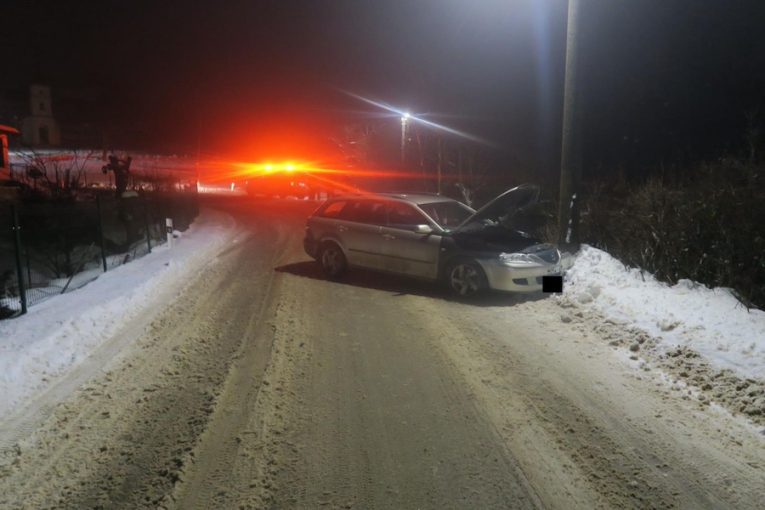Smyk na sněhu poslal řidičku na Jablonecku do sloupu elektrického vedení