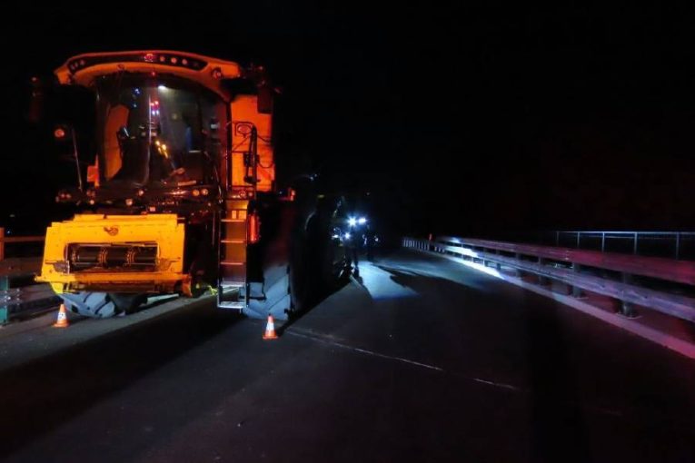 Obchvat Jičína ochromila noční nehoda dvou kombajnů. Škoda se blíží čtyřem milionům