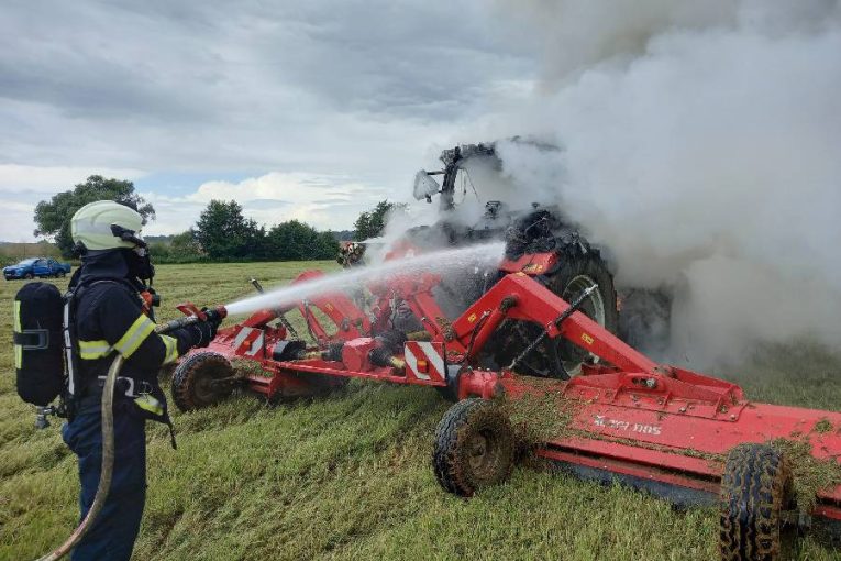 Traktor pohltily plameny během sekání pole – škoda dosahuje 2 milionů