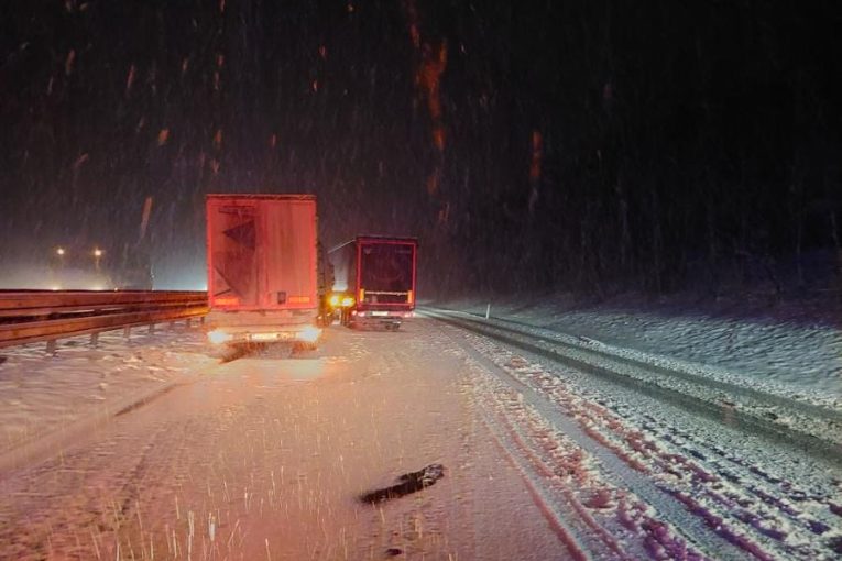 Kalamita na Vysočině: dálnice D1 byla ráno neprůjezdná, silnice blokují kamiony