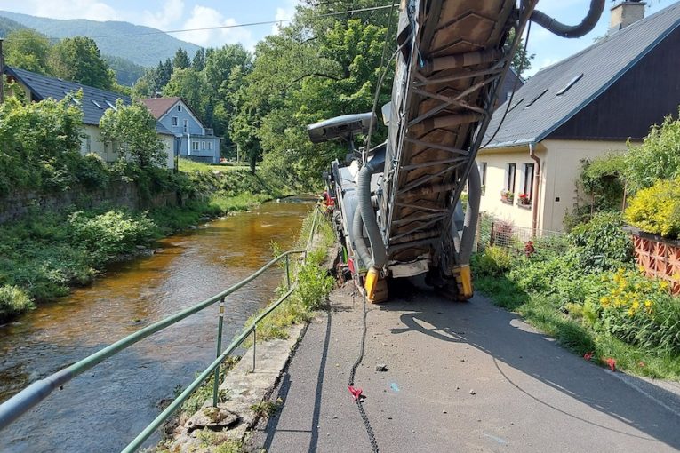 V Hejnicích hrozil pád silniční frézy do řeky. Hasiči ji vyprošťovali čtyři hodiny