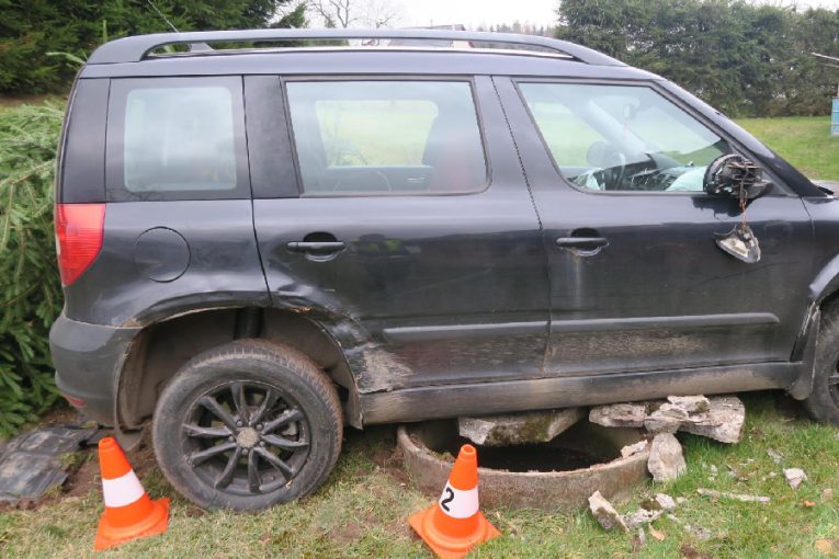 Řidička usnula a narazila do betonové studny