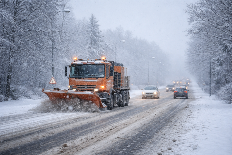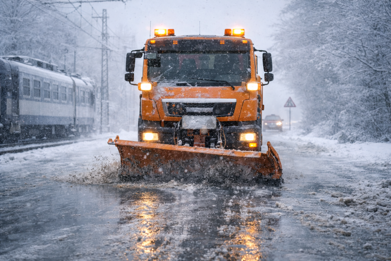 Neposypaná silnice a zvednutá radlice pluhu. Znamená to, že silničáři nic nedělají?