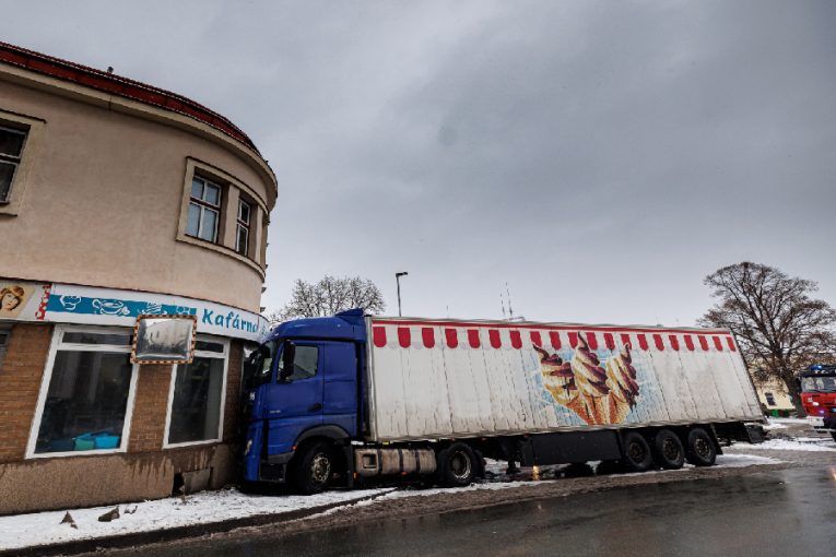 Kamion naboural do kavárny