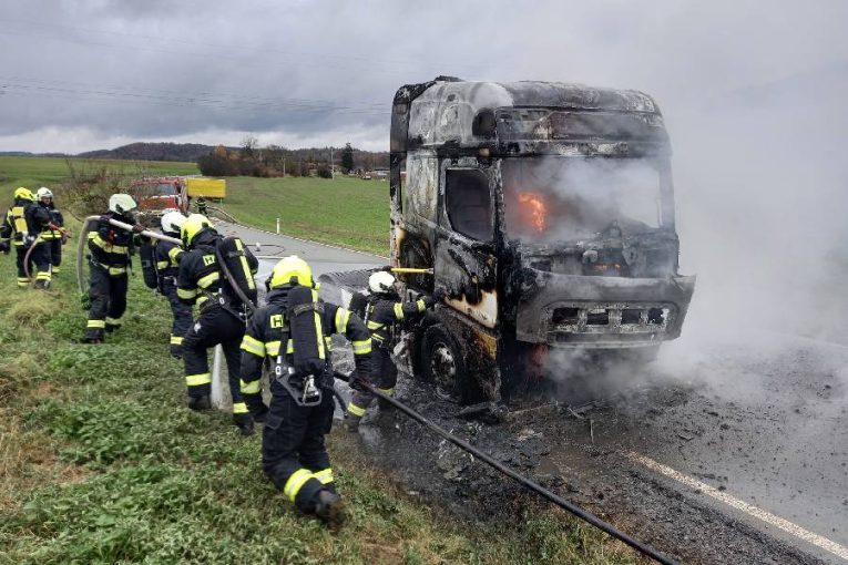 Oheň, nafta a hrozba pro přírodu. Hasiči zasahovali u požáru tahače