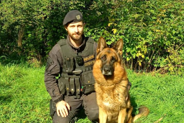 Psovod se psem Sanchem dopadl v Trutnově ženu ukrytou v křoví