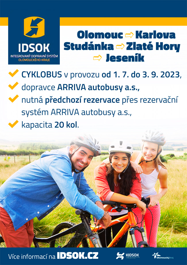 Cyklovozíku se cestující dočkají na vybraných spojích Olomouc – Jeseník a zpět na lince 904. Cyklobus bude v provozu o víkendech a státních svátcích v období od 1. července do 3. září u dopravce ARRIVA autobusy. Pro využití této služby je nutné mít předem zarezervované místo pro kolo. Rezervace probíhá prostřednictvím rezervačního systému dopravce. Kapacita cyklovozíku je omezená, bez předchozí rezervace tedy nebude místo pro kolo garantováno.