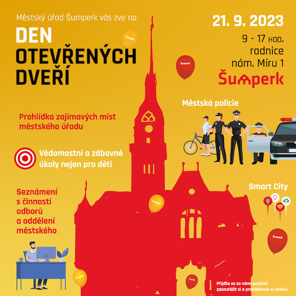 Den otevřených dveří historické budovy radnice na náměstí Míru připravuje město Šumperk na čtvrtek 21. září od 9 do 17 hodin. Budete moci nahlédnout do kanceláří, setkat se s vedením města, vystoupat na věž, plnit úkoly a odnést si odměnu. „Dopoledne bude zaměřeno na školáky, odpoledne pak pro širokou veřejnost. Návštěvníci se seznámí s činností jednotlivých odborů úřadu a dozvědí se, co a kde lze na městském úřadu vyřídit. Nahlédnou do obřadní síně, do podatelny, prohlédnou si kanceláře vedení města,“ zve na návštěvu starosta Miroslav Adámek.