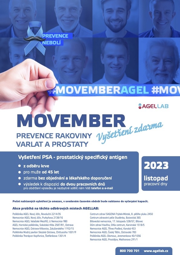 Karcinom prostaty je jedním z nejčastějších karcinomů u mužů, vysoké riziko přitom představuje rodinná anamnéza tohoto onemocnění. Síť laboratoří AGELLAB se snaží pomoci s prevencí tohoto zákeřného onemocnění a prostřednictvím bezplatné a rychlé formy vyšetření zachytit potencionální výskyt nemoci. „Včasné odhalení karcinomu prostaty dá pacientovi především šanci na úplné vyléčení onemocnění,” připomíná hlavní účel preventivní akce Adam Fojtík, zástupce vedoucího Laboratoře klinické biochemie AGEL. Nádory prostaty postihují zejména starší ročníky, nicméně ani u mladší skupiny nejsou výjimkou. „Po 50. roku života by si měl proto každý muž jednou ročně nechat stanovit hodnotu specifického prostatického antigenu, tzv. PSA”, upozorňuje Adam Fojtík.
