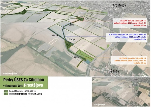 Prostějov nechal již před dvěma lety zpracovat krajinářskou studii na obnovu jihozápadního kvadrantu města, kde hodlá vybudovat takzvaný zelený prstenec města. Cílem je snížení prašnosti, větrné a vodní eroze, zvýšení přirozené schopnosti zadržování srážek, podpora biodiverzity a v neposlední řadě zvýšení možnosti rekreace v příměstské krajině. Důležitá je také adaptace na probíhající klimatické změny a jejich průvodní jevy. Tento úmysl teď začíná nabývat konkrétní podobu a město formulovalo veřejnou zakázku, kterou rozdělilo na dvě části. Biocentra v oblasti Nad Cihelnou a v místní části Žešov by měla být dokončena do listopadu příštího roku.