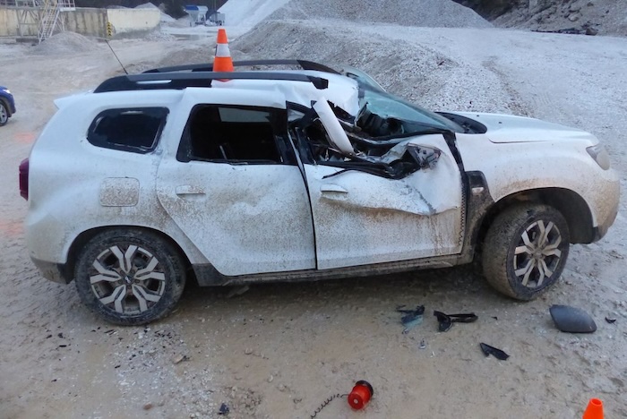 Pořádný kus štěstí měla včera posádka Dacie Duster při nehodě, která se stala v areálu firmy v Horní Lipové na Jesenicku. „Sedmačtyřicetiletý řidič chtěl s vozem zn. Dacia Duster odbočit vlevo. Při tomto manévru však nedal přednost protijedoucímu nakladači Caterpilar,“ popsala nehodu policejní mluvčí Tereza Neubauerová. Obří nakladač narazil přední lopatou do pravého boku Dacie. Naštěstí 31letý spolujezdec vyvázl bez zranění. Dechová zkouška u obou řidičů byla negativní. Při nehodě vznikla škoda za 400 tisíc korun.