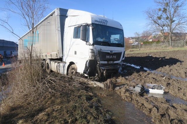Včera krátce před polednem jel v Lukové na Přerovsku řidič s kamionem ve směru od Brodku u Přerova na Rokytnici. „Z prozatím nezjištěných příčin, dle sdělení řidiče se jednalo o náhlou zdravotní indispozici, přejel do protisměru a vyjel vlevo mimo komunikaci, kde přejel mostek u polní cesty, strhl sloup veřejného osvětlení s rozhlasem a zastavil se v přilehlém poli,“ uvedla policejní mluvčí Miluše Zajícová. Při nehodě došlo k proražení palivové nádrže vozu a úniku pohonných hmot do místní strouhy. Místo úniku zabezpečili hasiči. Na místo se dostavila také pracovnice vodoprávního úřadu Přerov, která rozhodla o sanaci zeminy v místě úniku. Dechová zkouška u řidiče byla negativní. Při havárii se řidič zranil a byl převezen do nemocnice na vyšetření.