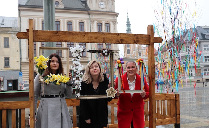 Velikonoční dominantu na Masarykově náměstí v Přerově tvoří kraslicovník, který je k vidění na stejném místě, jako v období adventu vánoční strom. „Kraslicovník jsme nazdobili více než dvěma tisíci kraslic a dalšími velikonočními dekoracemi, které vyráběli dobrovolníci i žáci škol nebo děti z mateřinek. A nově jsme pořídili dalších asi 850 ozdob,“ uvedla Lada Galová z Kulturních a informačních služeb města Přerova. Na náměstí je i fotokoutek se třemi rámy na obrazy, který se už stal oblíbenou součástí oslav Vánoc i Velikonoc. „První obraz zdobí rané jarní květy – narcisy. Druhý, největší rám, symbolizuje přicházející jaro v podobě rozkvetlých větviček stromu. A třetí je odkazem na přicházející Velikonoce,“ konstatovala marketérka města Jana Pivodová.