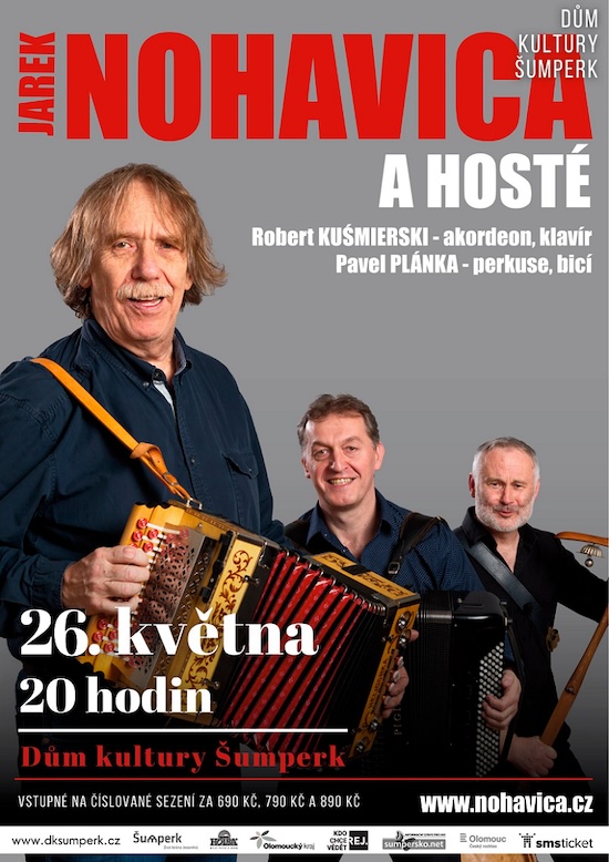 V tomto článku jsme vás informovali o chystaném sólovém recitálu Jarka Nohavici v pondělí 27. května v domě kultury v Šumperku. Vstupenky na recitál byly bleskově vyprodány. Nejznámější český folkový písničkář proto mimořádně přidal ještě jeden koncert na neděli 26. května od 20 hodin. „Po bleskovém vyprodání vstupenek na recitál, který se koná v pondělí 27. května, jsme se s Jarkem Nohavicou dohodli, že splníme vaše velké přání a přidáme ještě jeden koncert na neděli 26. května,“ sdělila potěšující zprávu produkční šumperského domu kultury Michaela Horáková.