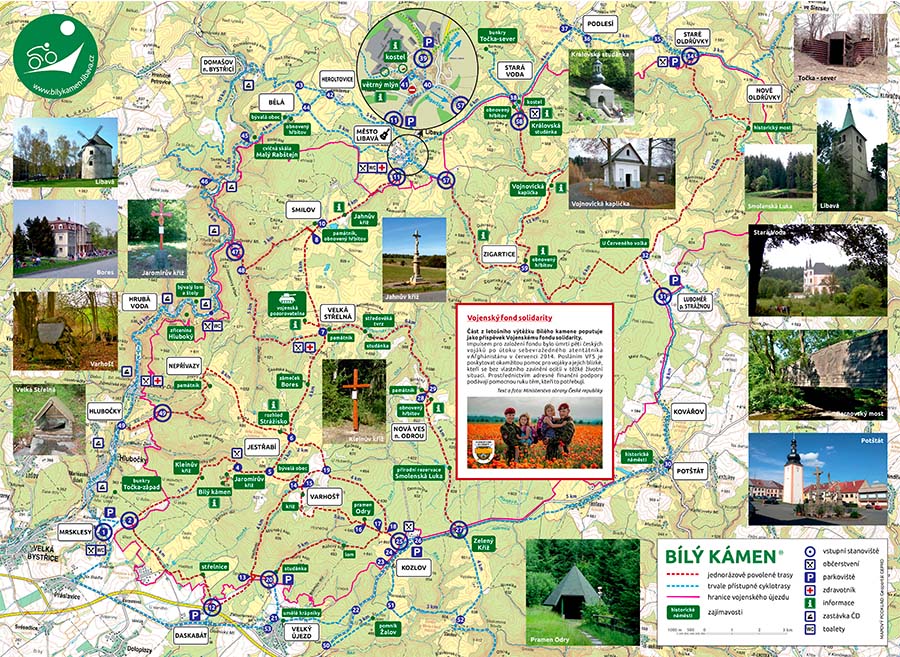 Cykloturistická akce Bílý kámen® umožňuje cyklistům, koloběžkářům, ale i pěším turistům poznání zajímavých míst jinak celoročně uzavřeného vojenského prostoru Libavá. Letos se můžou účastníci akce těšit na pár novinek. Tou první jsou další dvě exkluzivní trasy na území Vojenského újezdu Libavá. První trasa vede z Luboměře pod Strážnou do Zigartic (směr Libavá) a pomůže tak cyklistům zkrátit dlouhou okružní cestu. Druhá trasa vede po asfaltové silnici krásným údolím podél řeky Odry ze Starých Oldřůvek k historickému mostu u Barnova. Kvůli tomu bude přesunuto také vstupní stanoviště z Nových Oldřůvek do Starých Oldřůvek.
