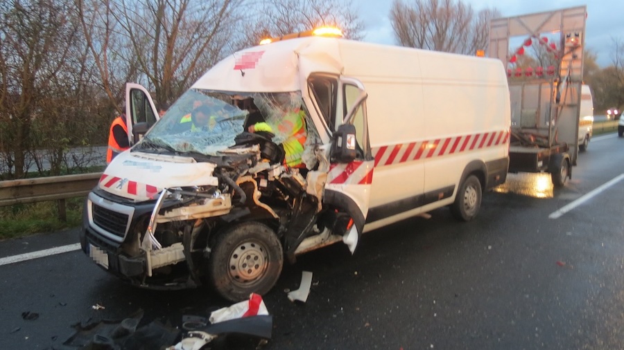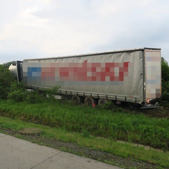 Nehoda se stala včera kolem 9. hodiny, informovali jsme vás o. ní v tomto článku. Viníkem byl podle policie řidič kamionu. „Podle zjištěných informací 33letý řidič nákladní soupravy nepřizpůsobil rychlost jízdy zejména hustotě provozu a dalším okolnostem, které je možno předvídat. Na poslední chvíli se chtěl vyhnout odstavenému nákladnímu vozidlu DAF, které na pravé straně u svodidel odstavil pro poruchu jeho 58letý řidič,“ vysvětlila policejní mluvčí Ivana Skoupilová. Řidič DAFu po zastavení z auta vystoupil a než stačil umístit výstražný trojúhelník za auto, přijel kamion a do jeho odstaveného vozu narazil. Řidič se snažil uskočit za svodidla, přesto mu kamion zachytil nohu a zranil ho. Policisté předběžně vyčíslili škodu na autech a na příslušenství dálnice na milion korun.